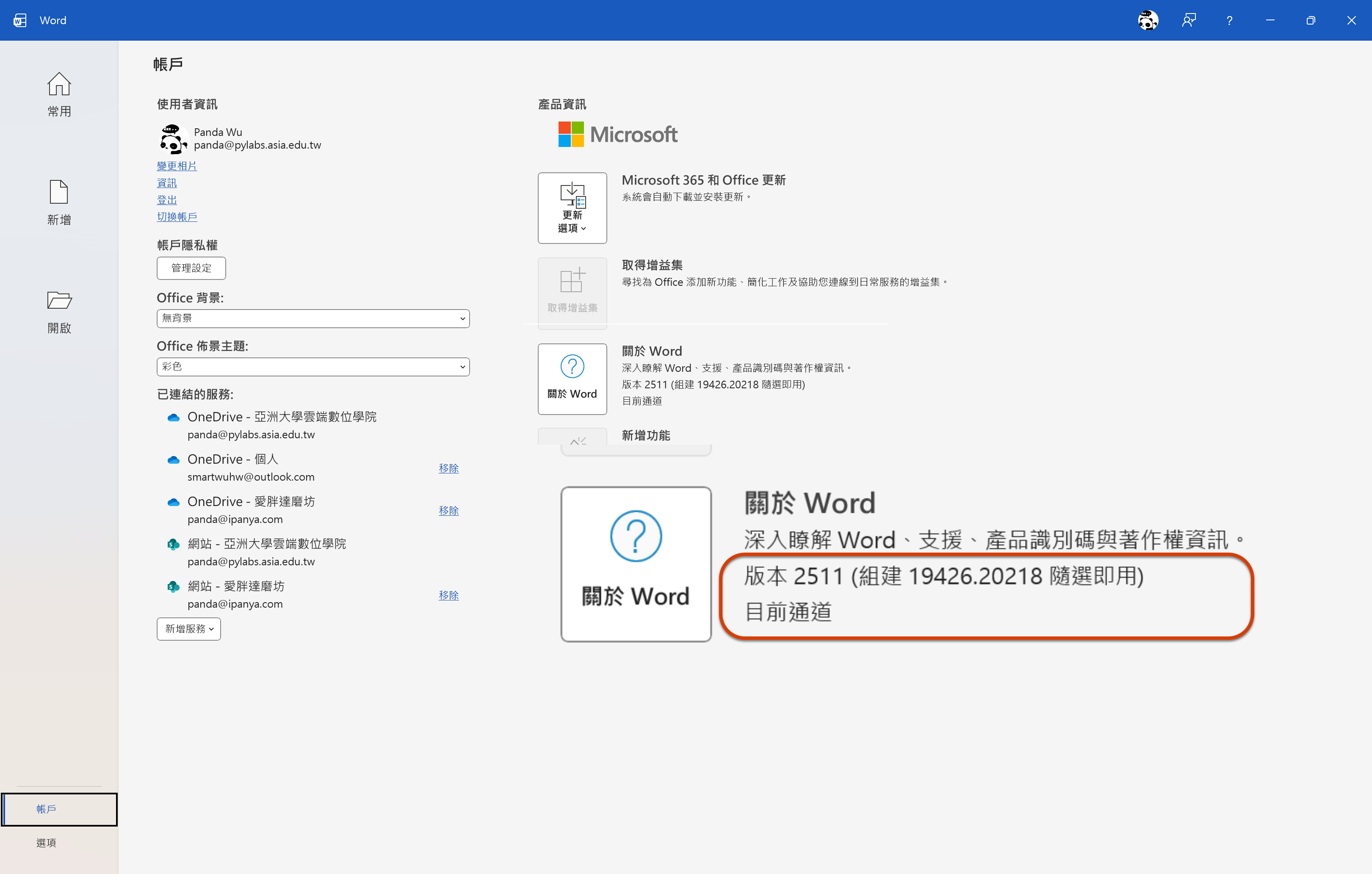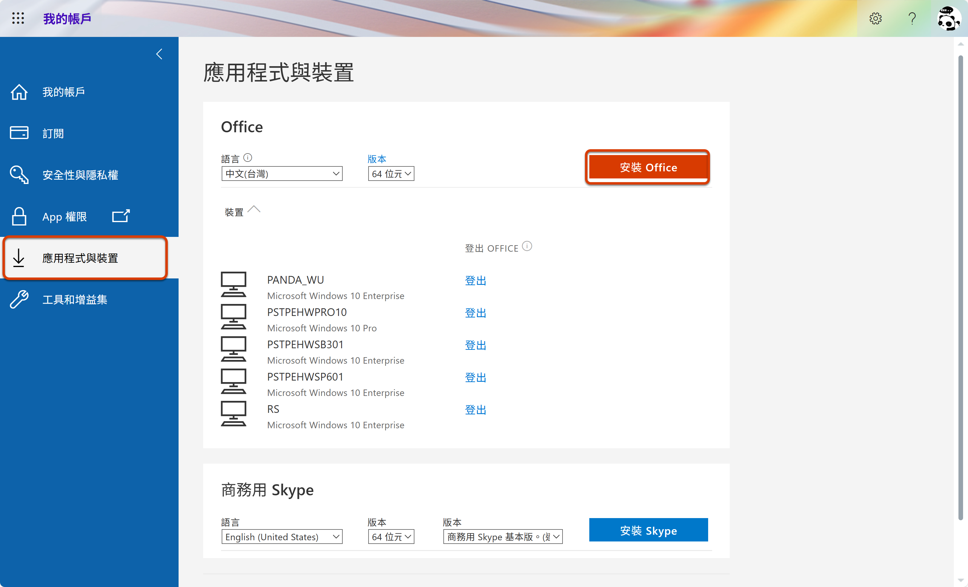 點選左下角個人頭像 -> 我的 Microsoft 365 設定檔
