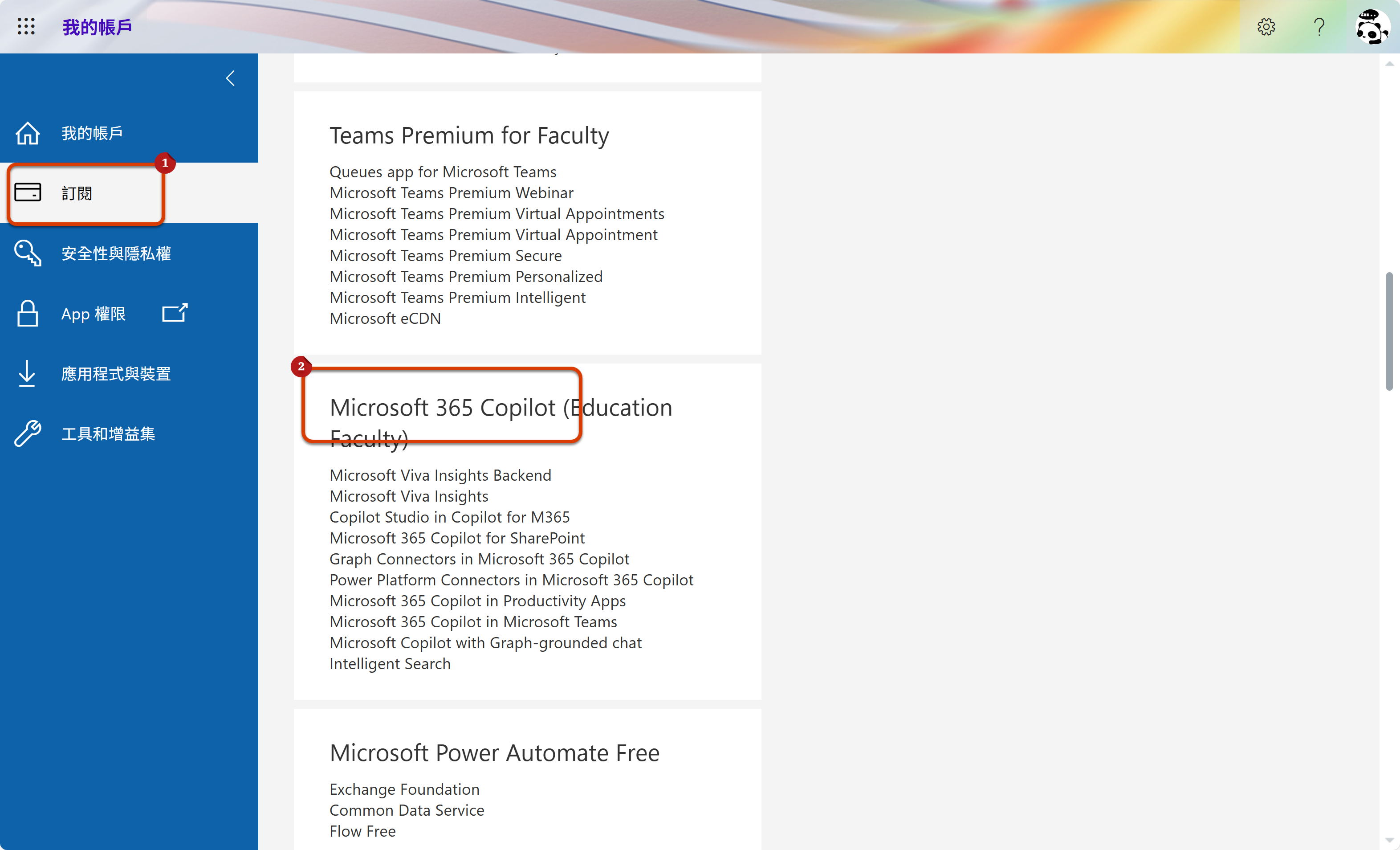 點選左側選單的 訂閱 (Subscriptions)